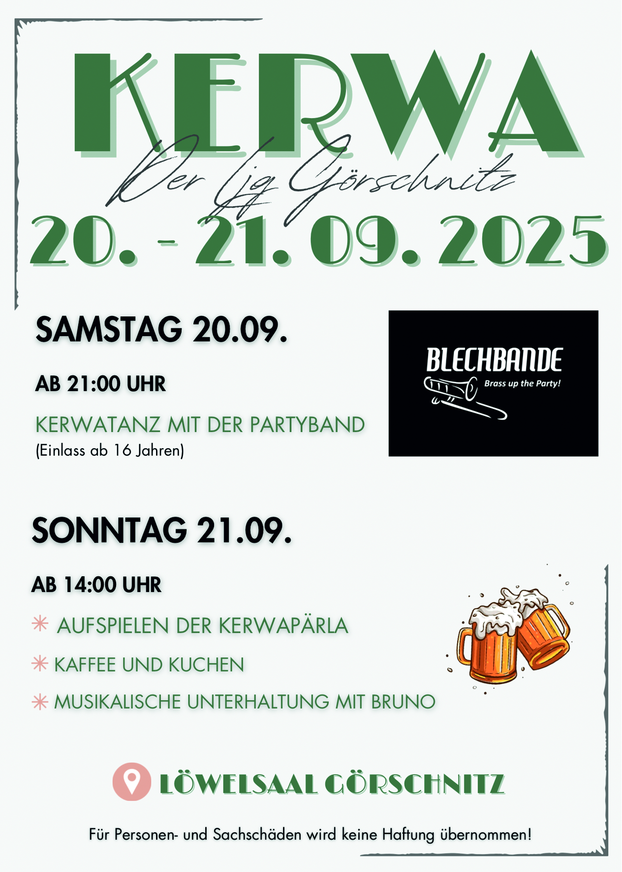 Sonntag, 21. September 2025 - 14:00 Markt Weidenberg Veranstalter: Landjugend GörschnitzOrt: Löwel-Saal, Görschnitz 16