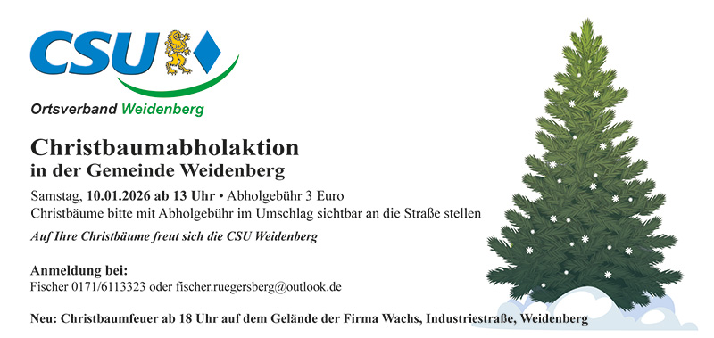 Samstag, 10. Januar 2026 - 13:00 Samstag, 10. Januar 2026 - 18:00 Ab 18:00 Uhr ChristbaumfeuerOrt: Anwesen Fa. Wachs Industriestraße
