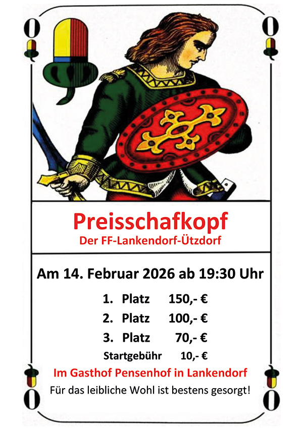 Samstag, 14. Februar 2026 - 19:30 Veranstalter: FF Lankendorf/ÜtzdorfVeranstaltungsort: Gasthof Pensenhof Lankendorf